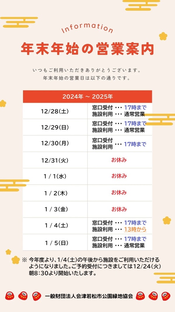 3. 年末年始の窓口受付・施設利用について