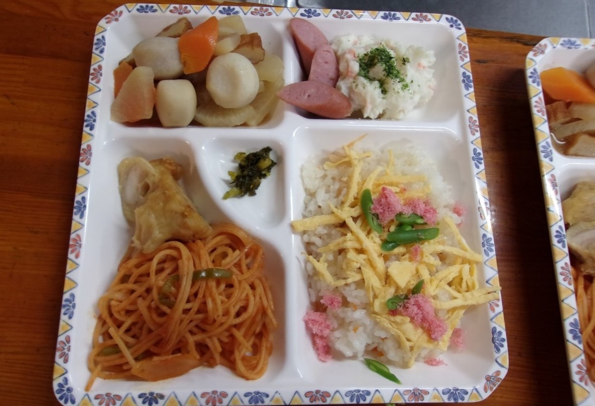 毎年開催するお花見会でしたが今年は新型コロナウィルス感染拡大防止の為、室内で行われました。少しでも楽しい時間を過ごして頂けるようスタッフが腕によりをかけてご馳走を用意したら皆さんとても喜ばれ、室内が笑顔(桜)満開になりました。