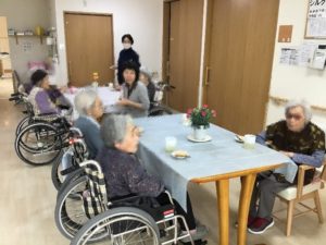 窓の外のあやめも綺麗に咲き、「きれいだなー」「何の花だべなー」「あやめだべー」と利用者様同士楽し気に話す声が聞かれます。