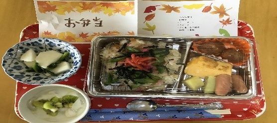 今回は行楽弁当をイメージして『ちらし寿司、卵焼き、肉団子、皮なしウインナー、かぶ漬け、フルーツヨーグルト』でした。「んまい!!」と、皆様に喜んでもらえました♪