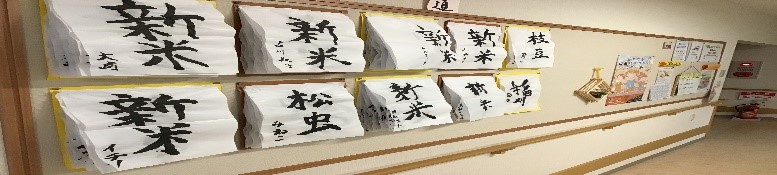 書道クラブでは、季節に合わせた言葉を書いて頂いております。