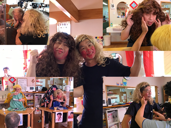 今年の敬老会は、二人羽織でケーキを食べたり目隠しをして化粧をしたりとスタッフが身体を張る内容を企画しました。