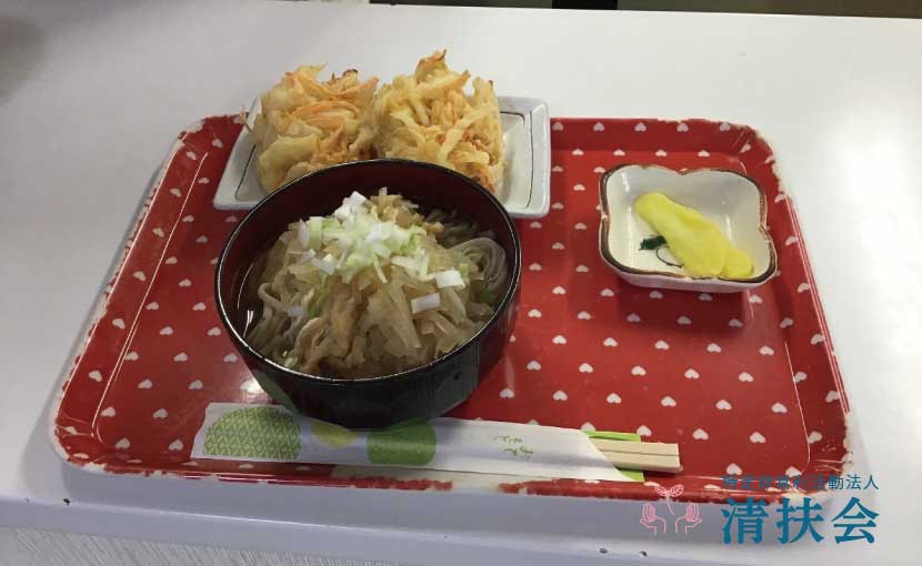 手作りのかき揚げと大根の漬物をそえ、みんなでお昼を楽しみました。