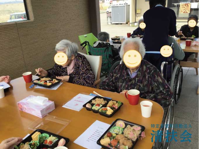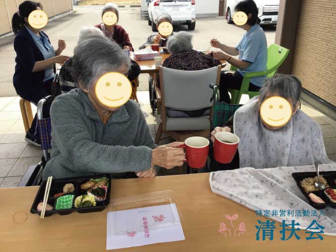 4月の行事食 2022.04.29 シルクケア坂下, スタッフブログ, 施設催し事 Tweet Share +1 4月は、“お花見弁当”を手作りしました🌸 暖かい日差しのなか、皆で乾杯し、外での昼食を楽しみました😊 笑顔がみられ、「おいしい」のお言葉もたくさんきかれ、普段と違う雰囲気を楽しんで頂けたかと思います。 日 時 : 2022.4.29 事業所 : シルクケア坂下 ※プライバシーポリシーに則り、施設利用者様の顔はモザイク処理しております。 Tweet Share +1 シルクケア坂下, スタッフブログ, 施設催し事 シルクケアに桜が咲きました前の記事 大名行列(散歩)次の記事