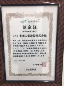 また、弊社は、福島県が推進する「ふくしま健康経営優良事業所」にも認定していただいており、今回の受賞を契機に、今後も、引き続き積極的に健康経営に取り組んでまいります。