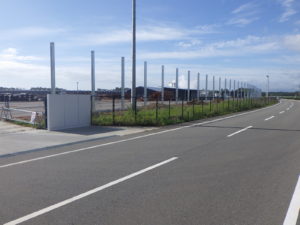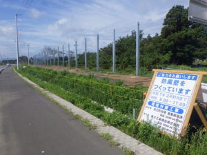 9月に入り、支柱の間に吸音・遮音性のあるパネルの取り付け作業に着手しました。